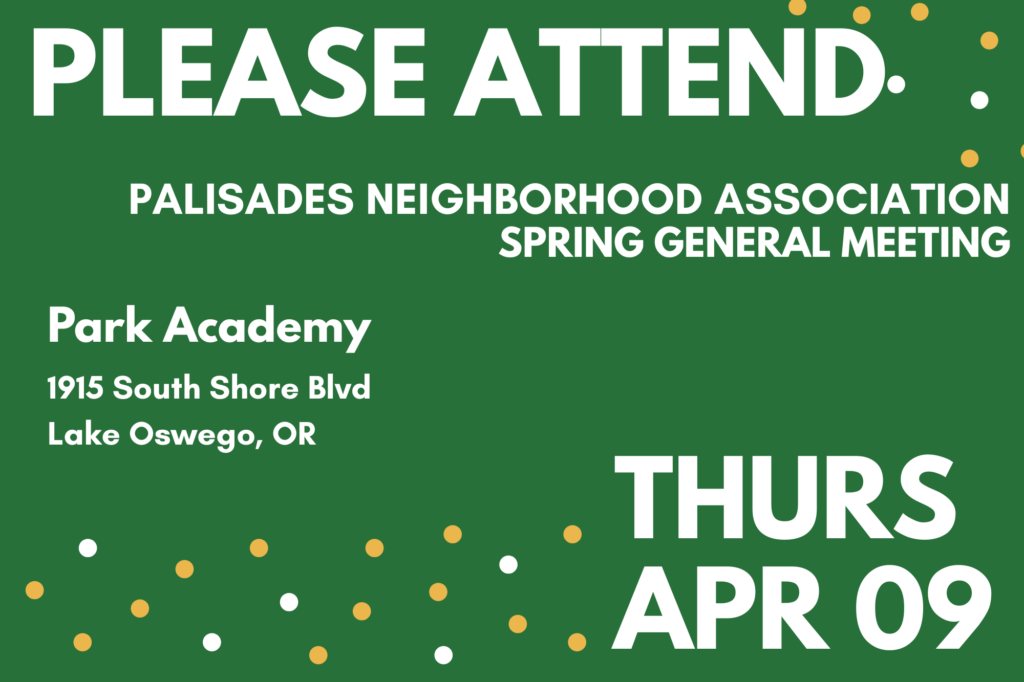 Mark Your Calendars! Join us for the Palisades Neighborhood Association Spring General Meeting!